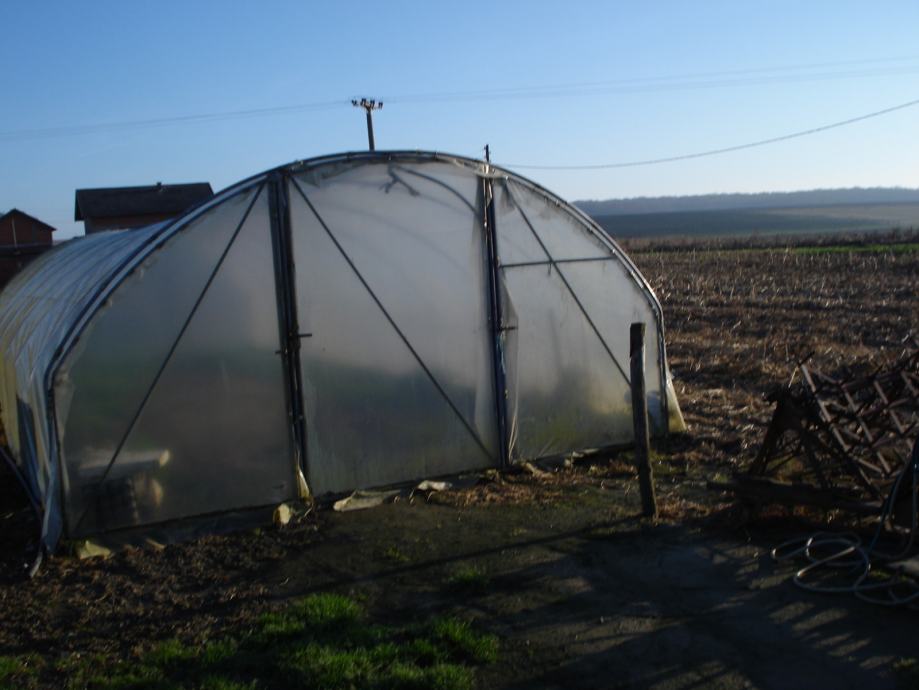 Prodajm kvalitetan plastenik od čeličnih pocinčani cijevi dužine cca 25 metara , širine 4,50 metra , visine 2,30 metra u sljemenu te 1 metar u najnižem dijelu . Lukovi su dužine 8 metara 16 komada te bočne stranice sa troja vrata . Po vrhu sa unutarnje strane ide pocinčana cijev za stabilizaciju te se na njima nalaze slavine za zaljevanje . Plastenik je vrlo aero dinamičan te nikada nije bilo ama baš nikakvih problema sa bilo kojom jačino vjetra . Prodajm ga jer nam više ne koristi , ne bavimo se više uzgojem povrča .