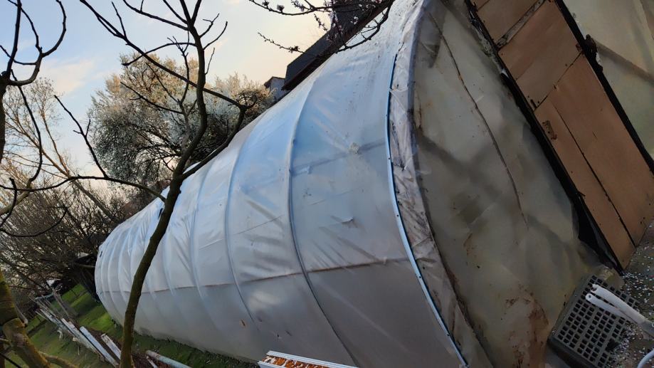 Dužina oko 12m, širina 3,20m, visina 2m, potrebno obnoviti najlon, nalazi se u Rugvici, vaš odvoz, zvati na 098 1721878