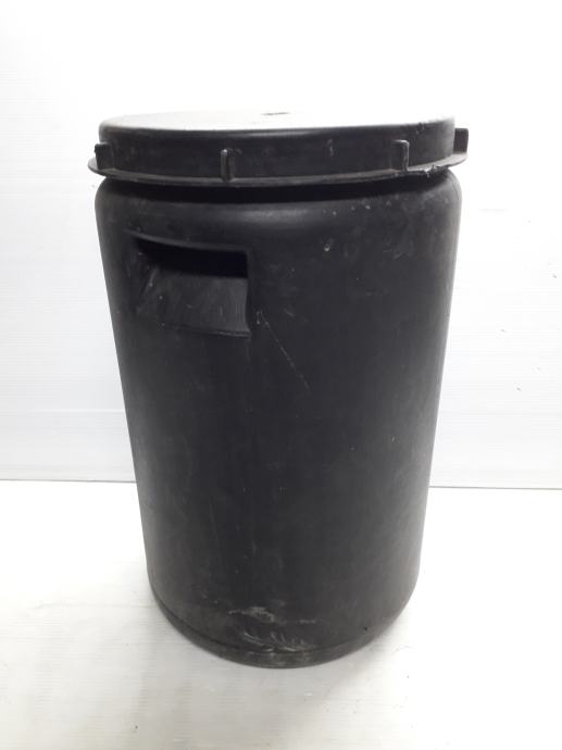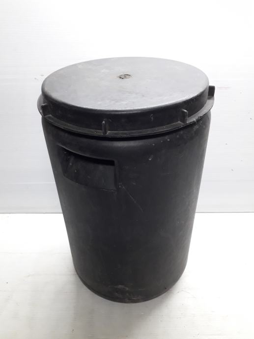 Crna plastična kanta / kaca sa velikim poklopcem veličine Ø 28cm x 46cm visoka.