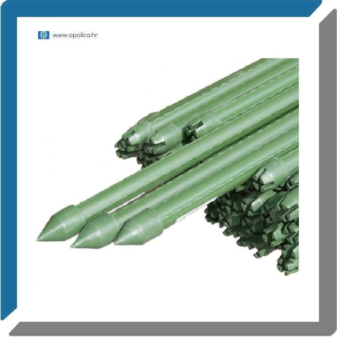 Metalni plastificirani kolac za vrt jednostavno se postavlja i neizbježan je dio skoro svakog vrta i povrtnjaka. Površina kolca ima sitne izbočine kako ne bi bio potpuno gladak da bi se biljka mogla čvrsto prihvatiti za kolac bez rizika da sklizne s kolca. Kolac je promjera fi 16mm. Plastificirani metalni kolac služi kao oslonac za biljke penjačice ili kao potpora mladim biljkama za pravilniji rast.