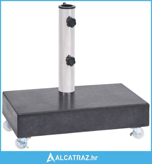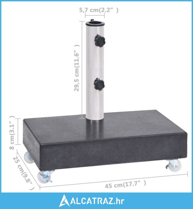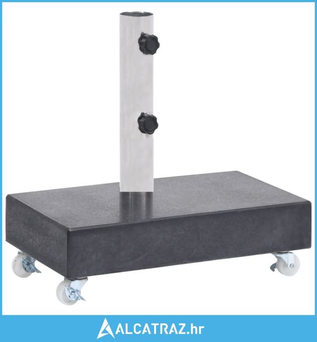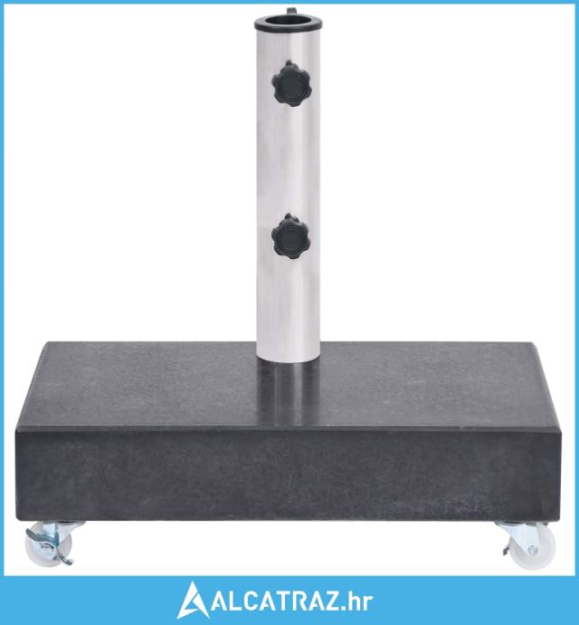 Držač za suncobran ima izdržljivu granitnu konstrukciju koja je vrlo stabilna zahvaljujući svojoj težini. Granit također ima luksuzan izgled i dojam, što daje ovoj bazi za suncobran profinjen izgled koji će dodati dašak elegancije vašem vanjskom prostoru za boravak. Cijev je izrađena od nehrđajućeg čelika. Uz to, zbog kotača se ovaj držač lako pomiče.