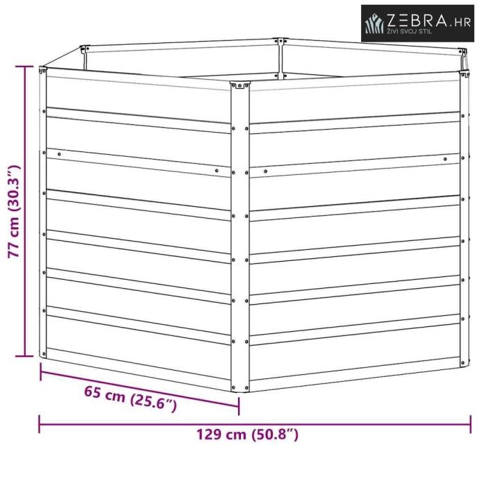Pocinčani čelik: Izrađen od kvalitetnog pocinčanog čelika, ova saksija je napravljena da izdrži, štiteći se od oštećenja i produžujući njen vijek trajanja. Moderan industrijski izgled ne samo da štiti, već i poboljšava estetiku saksije, dodajući stil vašem vrtu. Koristeći ovaj izdržljiv materijal, održavanje je minimalno, što čini vrtlarstvo ugodnim.