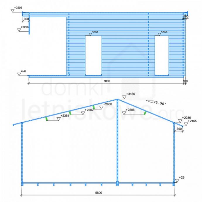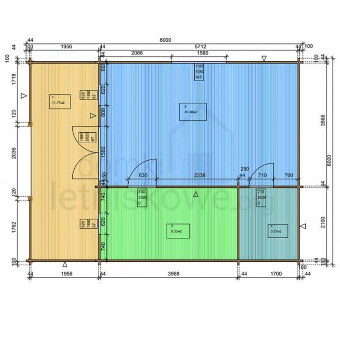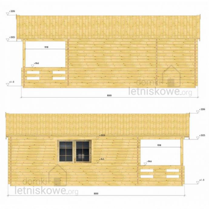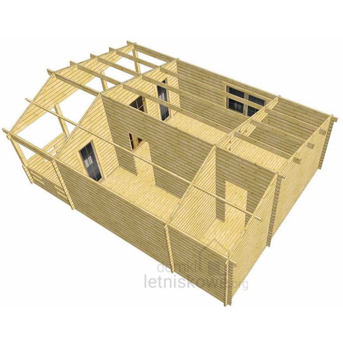 Kuća je izrađena od visokokvalitetne skandinavske smreke debljine zida 44 mm .
