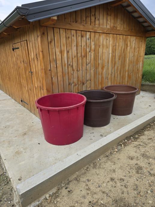 2 smeđe bačve 350 litara, crvena bačva 500 litara