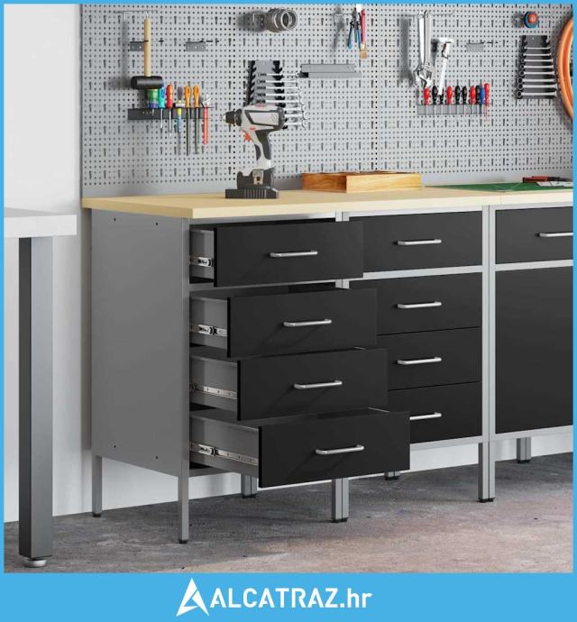 Ovaj industrijski čelični radni ormar pruža čvrsto skladištenje za tvoju garažu i radionicu s modernim dodirom. Dizajniran je za zahtjevne poslove, s čeličnim okvirom i vrhom od inženjerskog drva koji je izdržljiv i daje tvom radnom prostoru suvremen izgled.