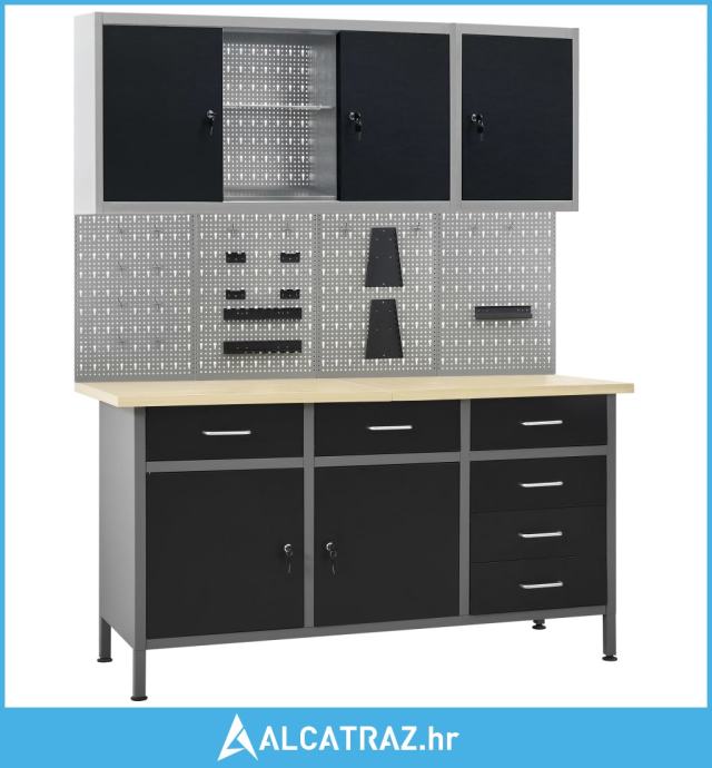 Ovaj set kombinira 1 radni stol, 4 zidne ploče i 2 zidna ormarića te je praktično rješenje za pohranu za vašu radionicu i garažu.