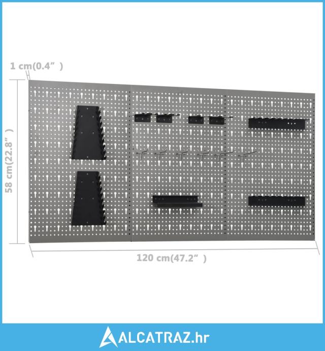 Ove ploče za alat napravljene su od čvrstog čelika kako bi mogle podnijeti težinu raznih alata, poput bušilica, kliješta, odvijača i ključeva. Ploče su perforirane za jednostavno i sigurno pričvršćivanje alata. Tri zidne ploče mogu se spojiti za dodatnu čvrstoću. Idealan su dodatak vašem radnom stolu i ormarićima u radionici s praktičnom širinom od 120 cm.