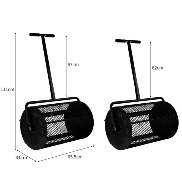 Ovaj višenamjenski rasipač prikladan je za sve vrste fino mljevenog gnojiva, uključujući kompost, treset, površinski sloj zemlje, sjeme i gnojivo. Brzim postavljanjem jednostavno pričvrstite ručku pomoću priloženih elemenata, napunite bubanj željenim gnojivom i počnite valjati.