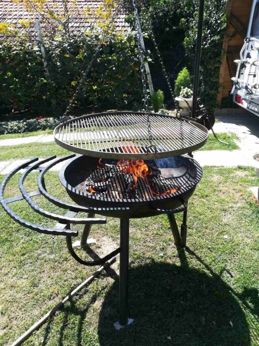 Roštilj za vrt inox rešetka fi 800 koji možete podizati vrlo jake konstrukcije pogodan za veče društvo.Može zamijena za SKUTER ,med ,ɓučino ulje.