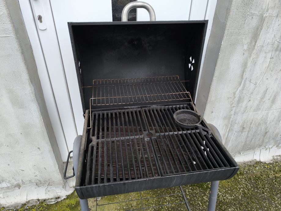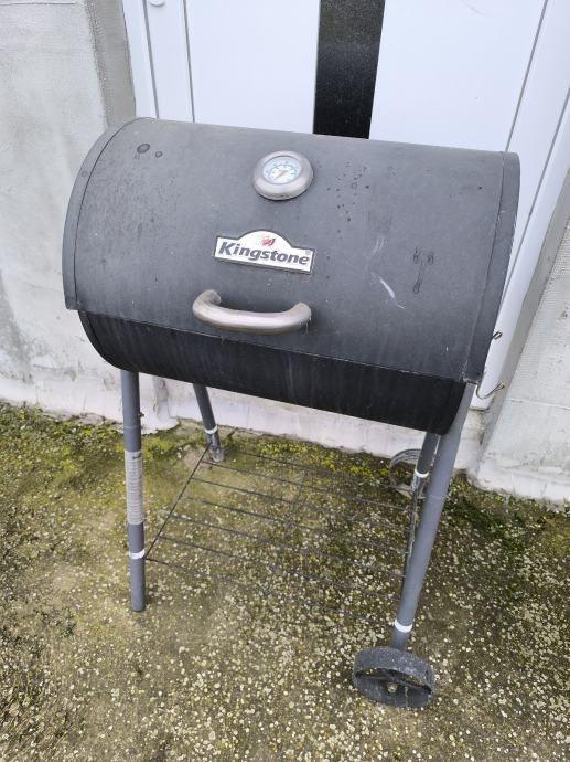 Roštilj smoker Kingstone u crnoj boji koja je malo matirala a inače je u super stanju. Temeljito očišćen i odmaščen.
