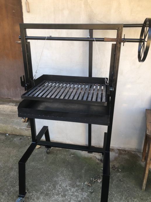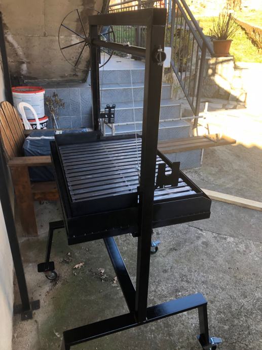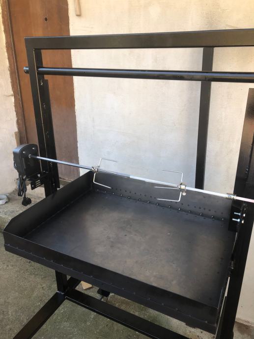 Rostilj je na 4 kotaca, s kocnicom. Cijena s motorom i raznjom 450eur