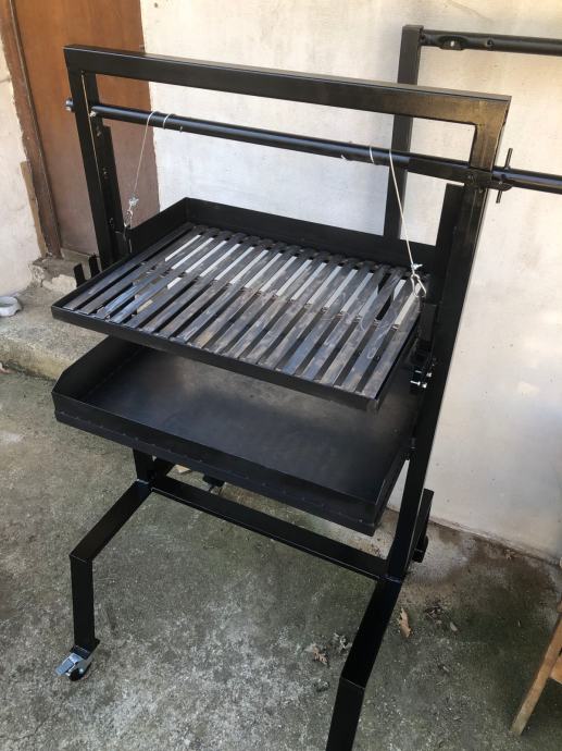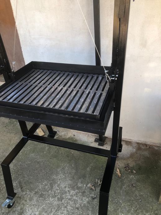 Roštilj na ugljen napravljen od kvalitetnog materijala. Profili 40x40x2mm 60x20x2mm, visina 170cm, sirina 80cm. Resetka za pecene 70x50cm