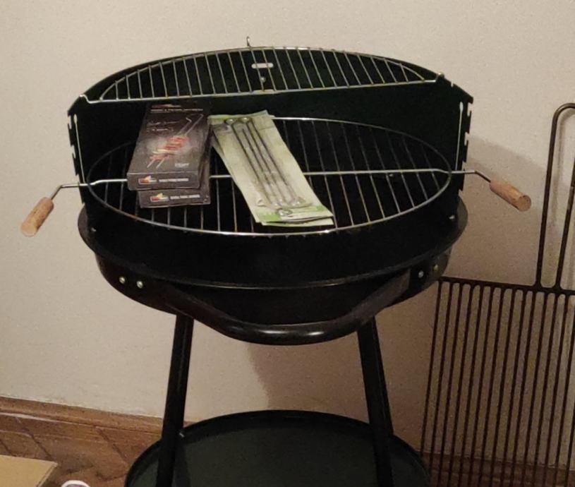 Roštilj Barbecue Family - dimenzija 52 X 84cm, promjer 52 cm, podna polica za odlaganje , kotači za lakši transport, emajlirana plitica za pripremu vatre, rešetka za grijanje hrane.