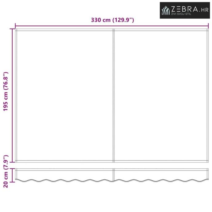 Veličina tkanine tende: 3,3 x 1,95 m (d x š)