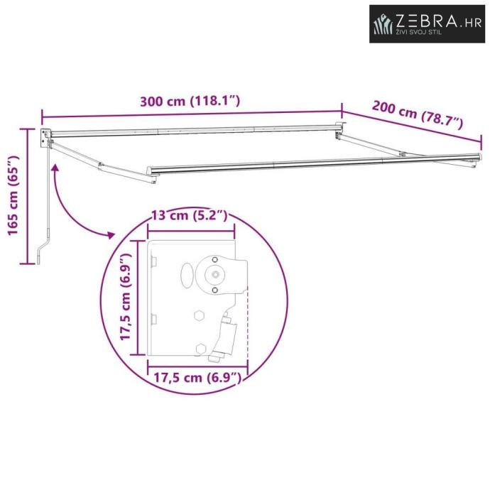 Veličina tkanine tende: 2,8 x 1,95 m (d x š)