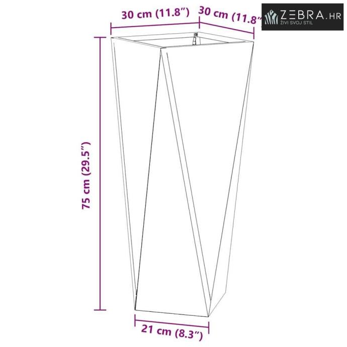 Materijali: Ova saksija je potpuno od čelika, što joj daje odličnu izdržljivost i otpornost na vremenske uvjete. Izbor ovog materijala kombinira modernu estetiku i praktičnost, omogućujući da saksija ostane odlična u vašem vrtu godinama.