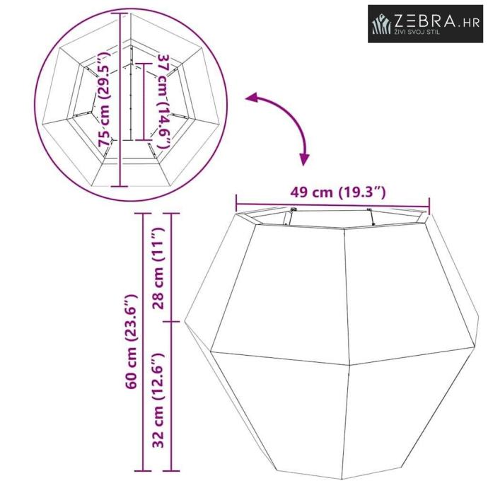 Čvrsta čelična konstrukcija Ova saksija, izrađena od jakog čelika, nudi odličnu izdržljivost i dugovječnost, pa će izdržati sve vremenske uvjete. Robusna izrada osigurava da će vaše biljke imati stabilan dom, bez obzira na stresne uvjete. Savršen izbor za dugotrajnu prirodnu ljepotu.