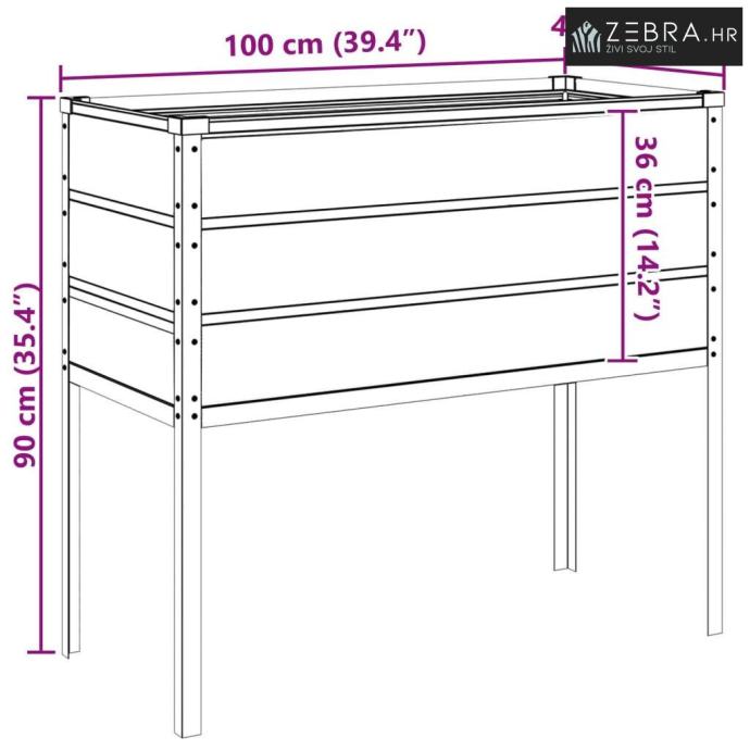 Pocinčani čelik: Sadilica je napravljena od visokokvalitetnog pocinčanog čelika, osiguravajući čvrstoću i otpornost na vremenske uvjete. Ovaj materijal je izabran zbog svog industrijskog izgleda i dugotrajne otpornosti, savršeno rješenje za vanjske prostore.