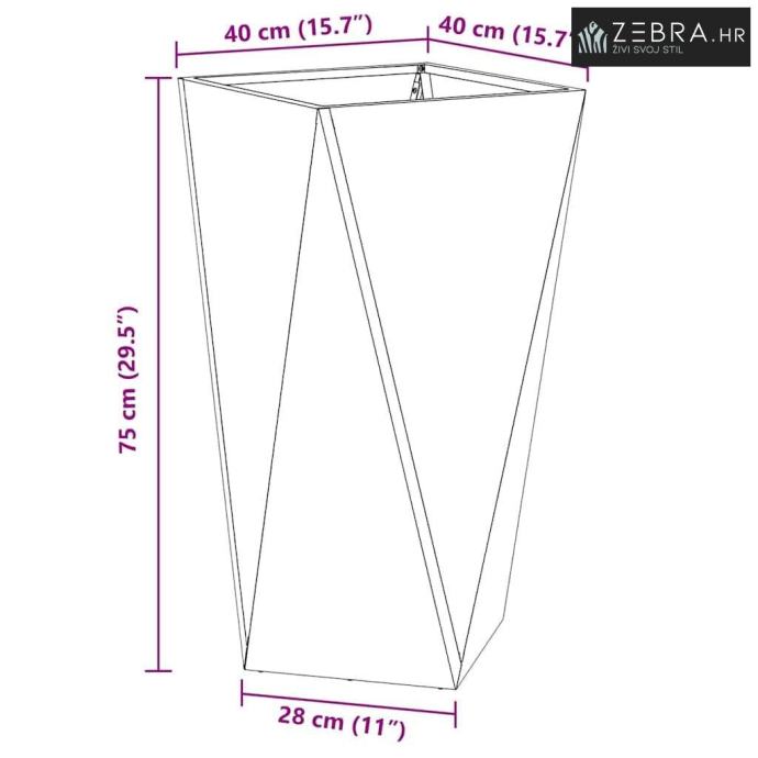Materijali: Ova saksija je potpuno od čelika, što joj daje odličnu izdržljivost i otpornost na vremenske uvjete. Izbor ovog materijala kombinira modernu estetiku i praktičnost, omogućujući da saksija ostane odlična u vašem vrtu godinama.