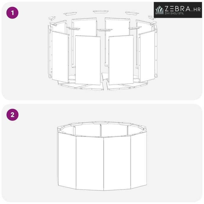 Jednostavno sastavljanje: Saksija dolazi s potrebnim dijelovima za sastav, potreban je samo odvijač i pomoć dvije osobe. Ovaj jednostavni proces čini brzu transformaciju vašeg vanjskog prostora u vrtni raj bez opterećenja. Jasna uputstva vode vas korak po korak.