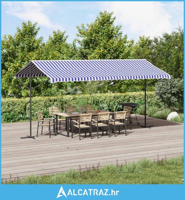 Samostojeća tenda plavo-bijela 500 x 300 cm od tkanine i čelika - NOVO