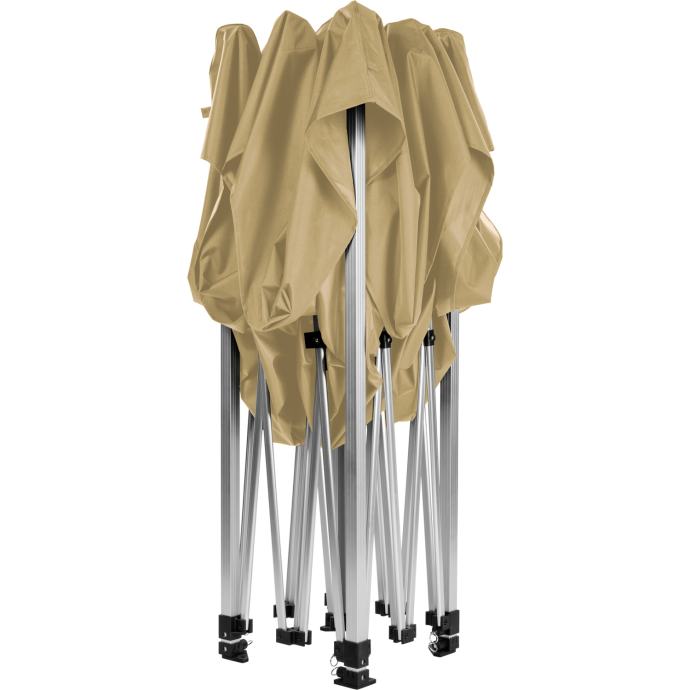 MAKSIMALNA STABILNOST I FUNKCIONALNOST: Ekstra jake teleskopske noge (30 x 30 mm), robusni okvir u obliku škara (23 x 12 mm), povećane noge, ekstra stabilni zglobni spojevi, 5-struko podešavanje visine od 310 - 340 cm (prostor za glavu 177 - 207 cm ), visokokvalitetni klik sustav s zaključavanjem vanjskim zasunom s prstenom za povlačenje, integriranim središnjim zateznim stupom kao potporom krova za dodatnu stabilnost i visinu
