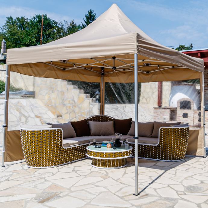 "Pro" 3x3m sklopivi paviljon sa krovom i 2x bočne stranice sa xxl panoramskim prozorima.