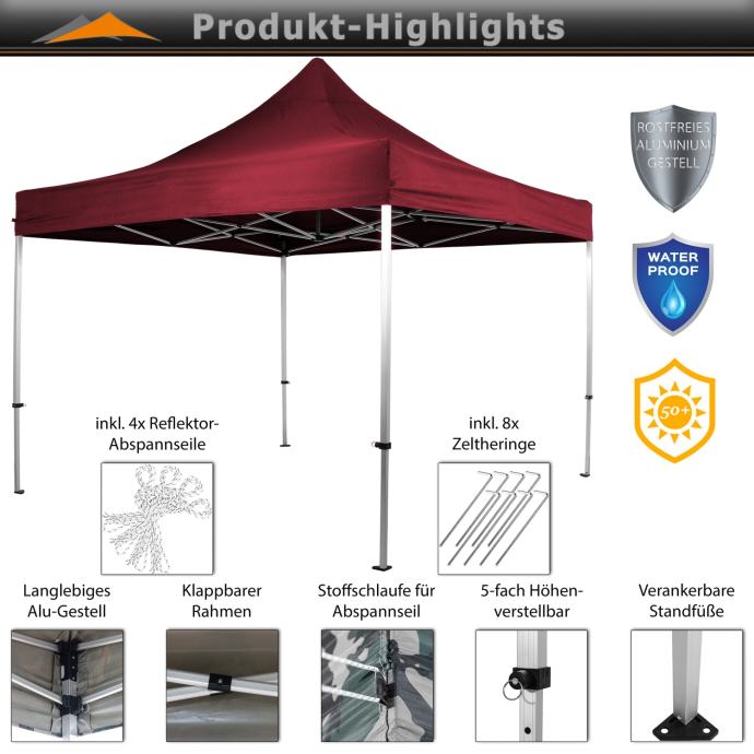 INSTENT® Premium sklopivi paviljon - krov dimenzija 3x3m u različitim varijantama: 8 boja bez bočnog dijela, sa 2 bočna dijela ili sa 4 bočna dijela