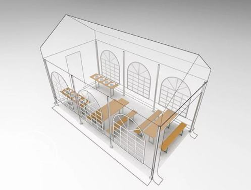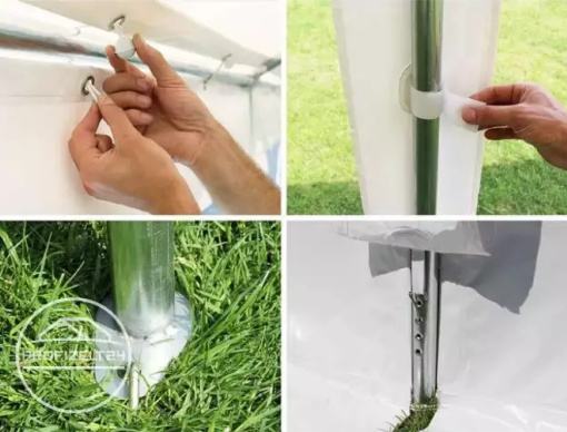 UPOZORENJE: Napominjemo da paviljon ne nudi nikakvu zaštitu tijekom oluja ili u vrlo lošim vremenskim uvjetima.