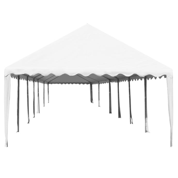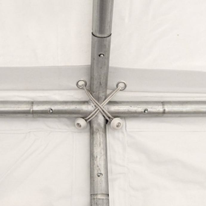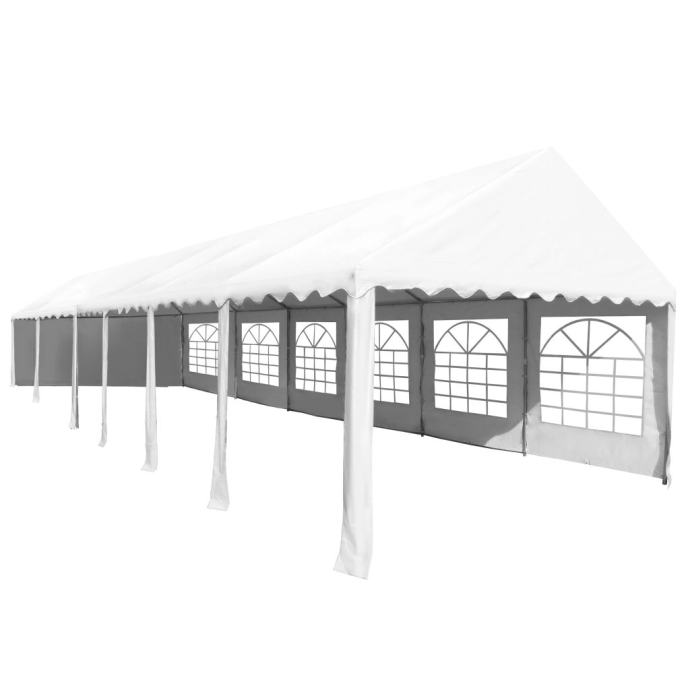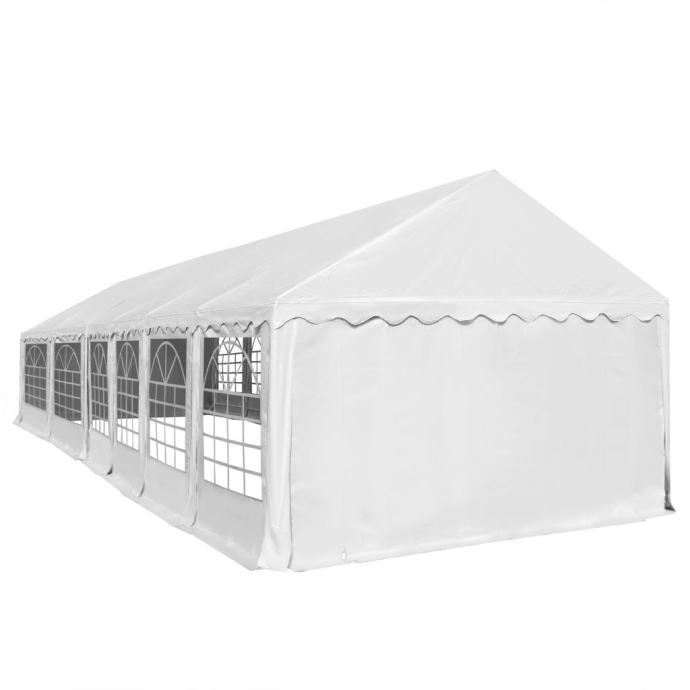 Pokrov ovog šatora za zabave je izrađen od 100% PVC materijala, što njegov krov i bočne stijenke čini otpornim na vodu i UV zrake. Šator ima 12 prozorskih panela i 6 ukrasnih prozora na svakom, kao i 2 vrata različitih dimenzija s praktičnim prolazima na odmotavanje i patentnim zatvaračima za lakši ulazak. Okvir je izrađen od čelika otpornog na hrđu i samim time je iznimno izdržljiv.
