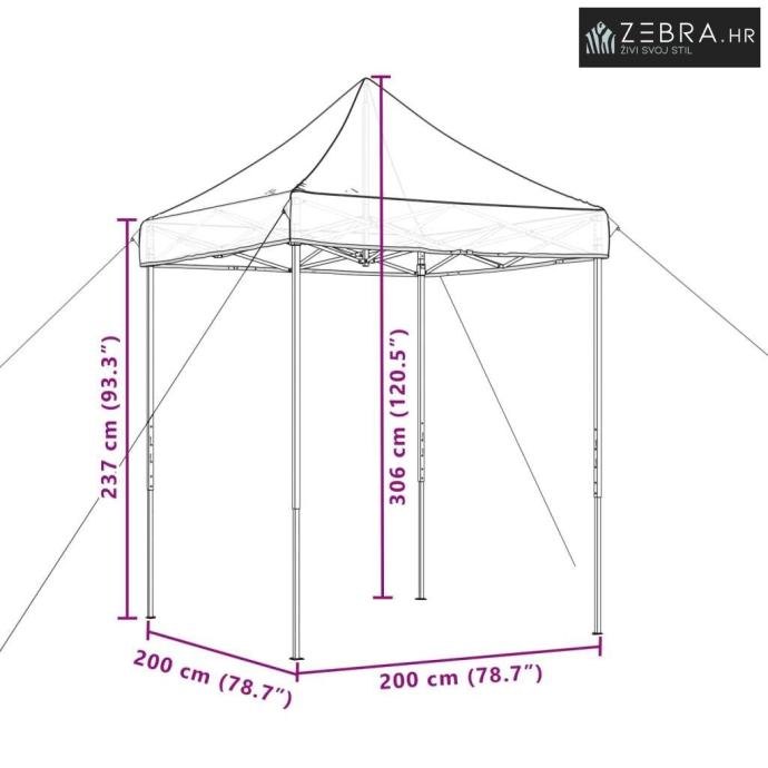 Upute za njegu: Održavanje šatora zahtijeva minimalno truda - jednostavno ga obrišite vlažnom krpom i bit će spreman za sljedeći sunčani dan. Tako lako održavanje osigurava da je uvijek spreman za vanjske prostore.