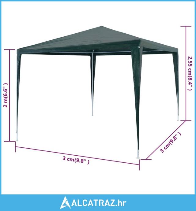 Šator za zabave napravljen je od polietilenskog materijala otpornog na UV zračenje i vodu te je stoga vrlo praktičan za vanjsku upotrebu. Okvir je proizveden od čelika otpornog na hrđu, što čini ovu vanjsku nadstrešnicu stabilnom i izdržljivom. Ova vrtna sjenica lako se sastavlja.