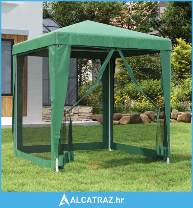 Šator za zabave s 4 mrežasta bočna zida zeleni 2 x 2 m HDPE - NOVO