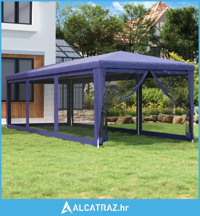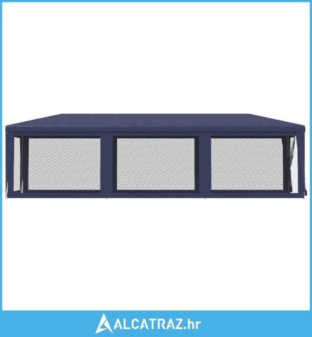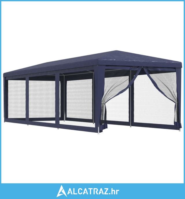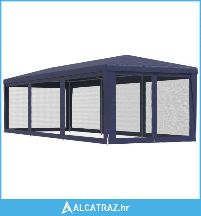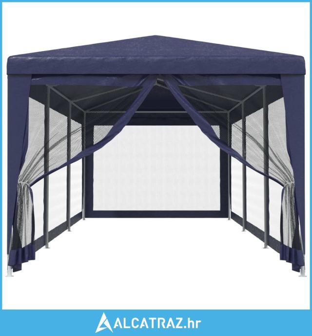 Šator za zabave s 8 mrežastih bočnih zidova plavi 3 x 9 m HDPE - NOVO