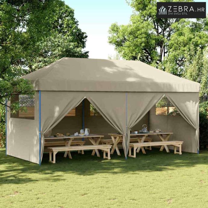 Ovaj šator za zabave brzo se postavlja i idealan je za okupljanja vani. Nudi dobar spoj stila i funkcionalnosti. Savršen je za razne događaje, od vjenčanja do ležernih obiteljskih okupljanja, pružajući zaštitu od lošeg vremena. Njegova taupe boja dodaje elegantan dodir koji se uklapa u svaki vrt ili vanjski prostor.