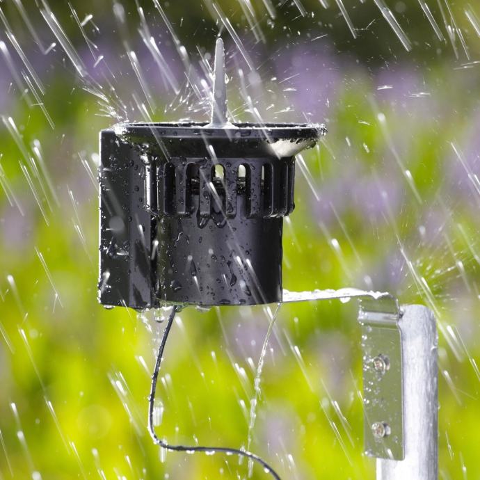 Senzor za kišu koji automatski gasi program za navodnjavanje kada pada kiša i ponovno ga pokreće, u zadanom satu, kada kiša prestane. Sprječava nepotrebni gubitak vode i nije mu potreban električni priključak. Senzor za kišu koji funkcionira na radiofrekvenciju. Obustavlja navodnjavanje u slučaju kiše. Povezuje se s Tempo i Dual programatorima te sa Hydro-4 preko radiofrekvencije. RF senzor za kišu dizajniran je za korištenje na otvorenom, da je izložen kiši, postavlja na nosač od nehrđajućeg čelika koji je uključen u paket. Nije potreban električni priključak. Doseg