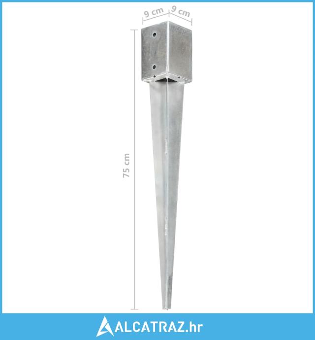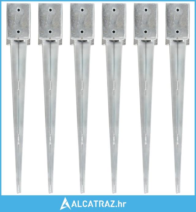 Šiljci za tlo 6 kom srebrni 9 x 9 x 75 cm od pocinčanog čelika - NOVO
