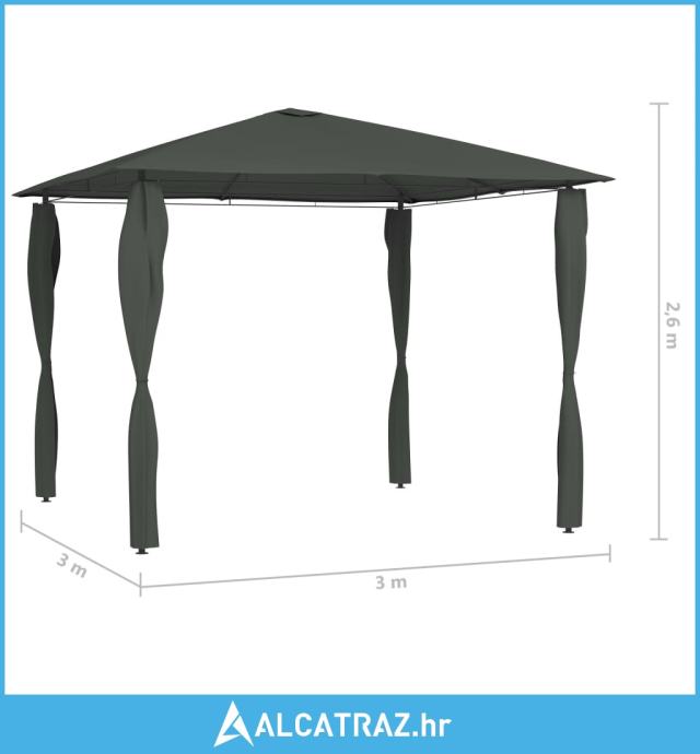 Sjenica s bočnim zidovima 3 x 3 x 2,6 m antracit 160 g/m² - NOVO