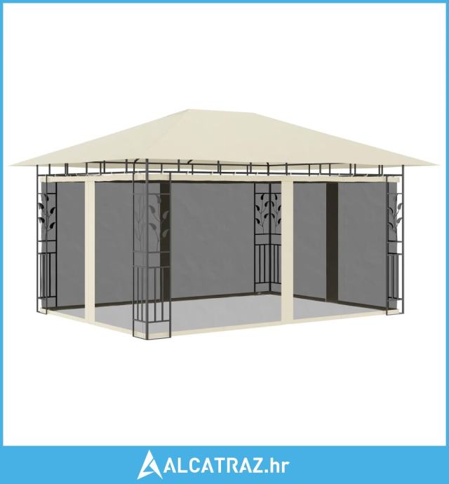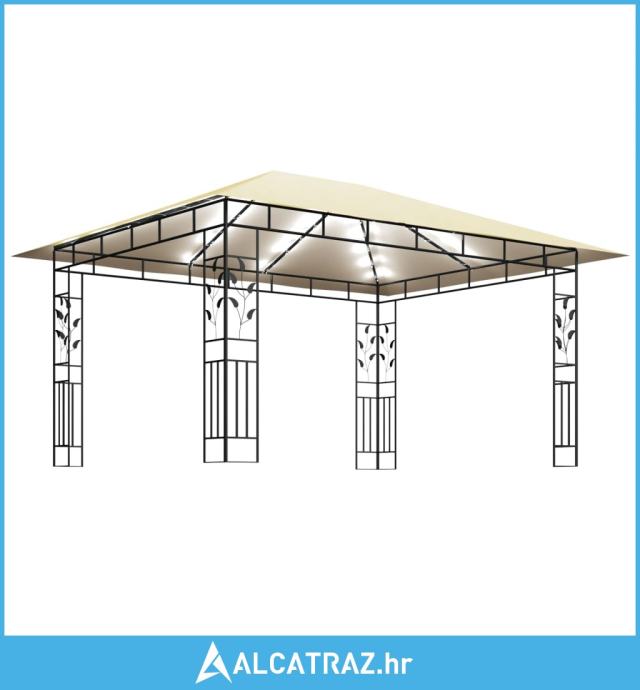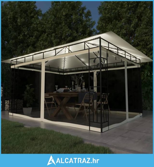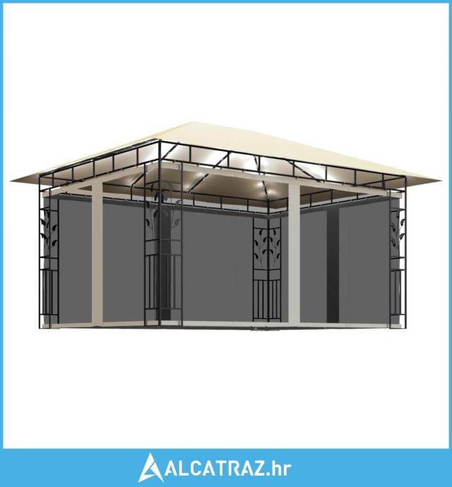Sjenica s mrežom i LED svjetlosnim trakama 4 x 3 x 2,73 m krem - NOVO