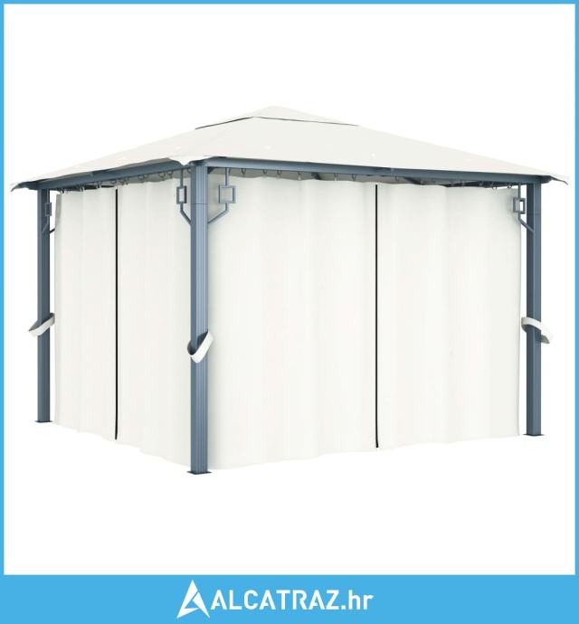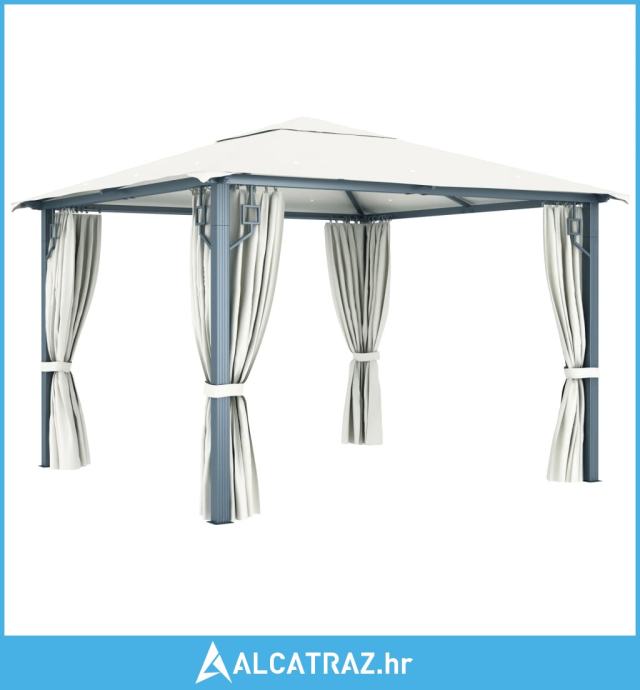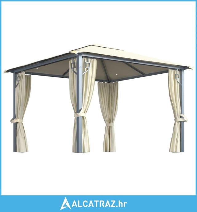 Sjenica sa zastorima i LED svjetlima 300 x 300 cm krem aluminij - NOVO