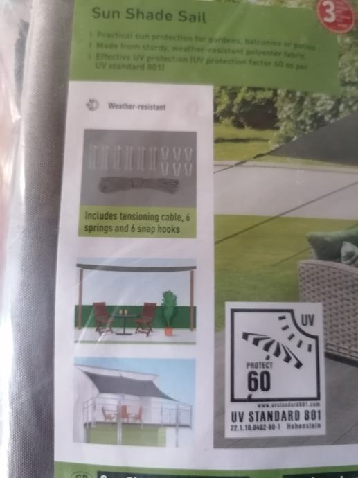 Praktična zaštita od sunca. Uključeno zatezno uže, 6 opruga i 6 karabinskih kuka.