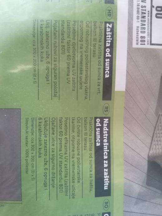 Prodajem novo sjenilo za vrt, dvorište ili terasu, original upakirano.