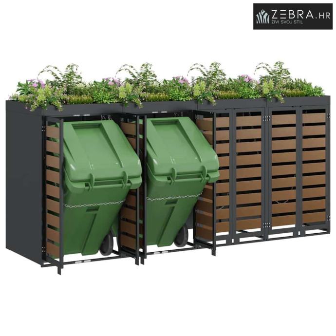 Ovo skladište za smeće nudi moderno rješenje za organizaciju kanti dok održava privlačnost vašeg vrta ili terase. Njegov dizajn savršeno se uklapa u različite vanjske prostore, dajući vam funkcionalnost i estetski dojam. Osmišljeno za vanjsku upotrebu, ovo skladište je otporno i dugotrajno, pomažeći da vaš prostor izgleda uredno. Idealno je za sve koji žele red i organizaciju na otvorenom.