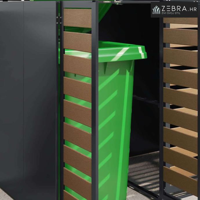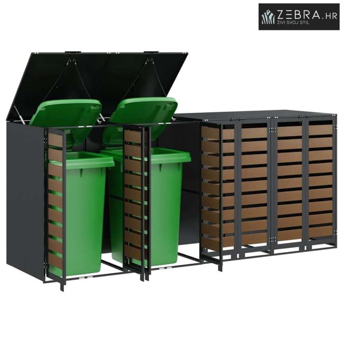 Ovo skladište za smeće nudi moderno rješenje za organizaciju kanti dok održava privlačnost vašeg vrta ili terase. Njegov dizajn savršeno se uklapa u različite vanjske prostore, dajući vam funkcionalnost i estetski dojam. Osmišljeno za vanjsku upotrebu, ovo skladište je otporno i dugotrajno, pomažeći da vaš prostor izgleda uredno. Idealno je za sve koji žele red i organizaciju na otvorenom.