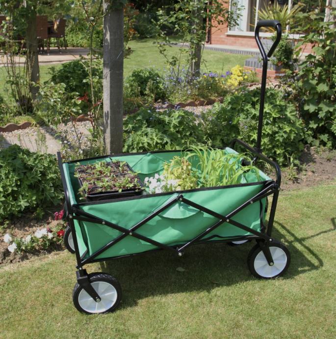 Sklopiva vrtna kolica koja mogu prevesti do 70 kg vrtne opreme, biljaka i alata.