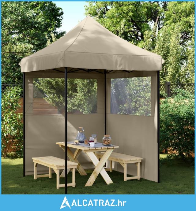Sklopivi prigodni šator za zabave s 2 bočna zida smeđesivi - NOVO