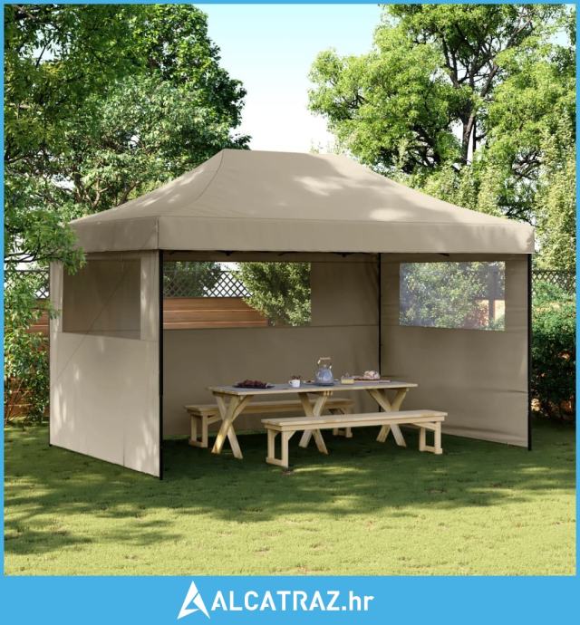 Sklopivi prigodni šator za zabave s 3 bočna zida smeđesivi - NOVO