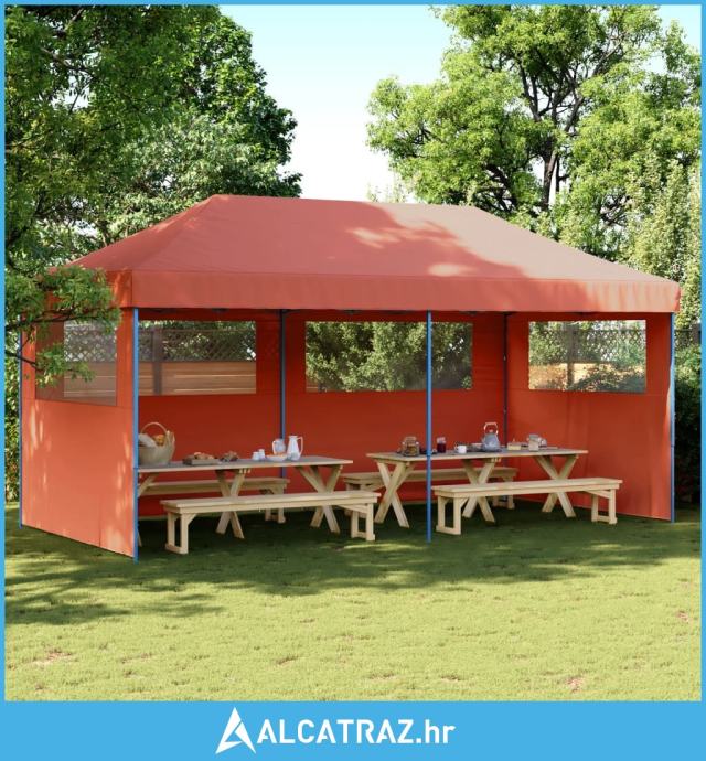 Sklopivi prigodni šator za zabave s 3 bočna zida terakota - NOVO