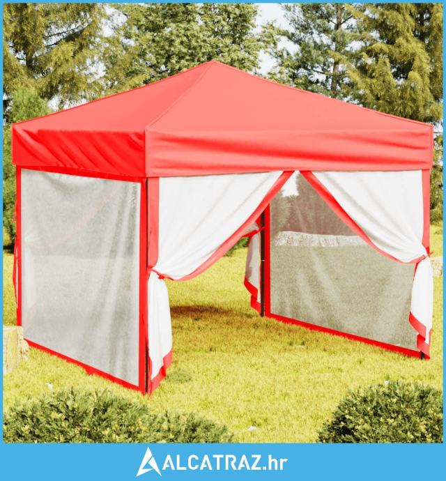 Sklopivi šator za zabave s bočnim zidovima 3 x 3 m crveni - NOVO