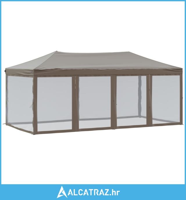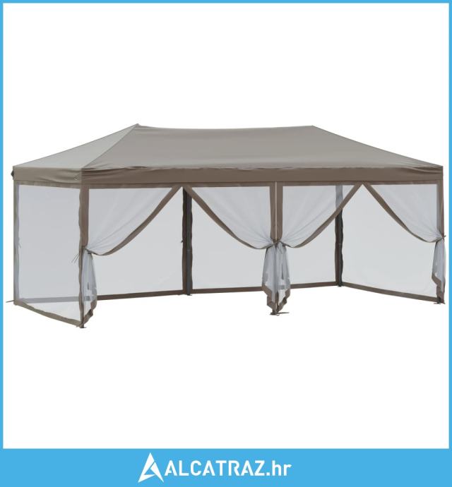 Sklopivi šator za zabave s bočnim zidovima 3 x 6 m Smeđe-siva - NOVO